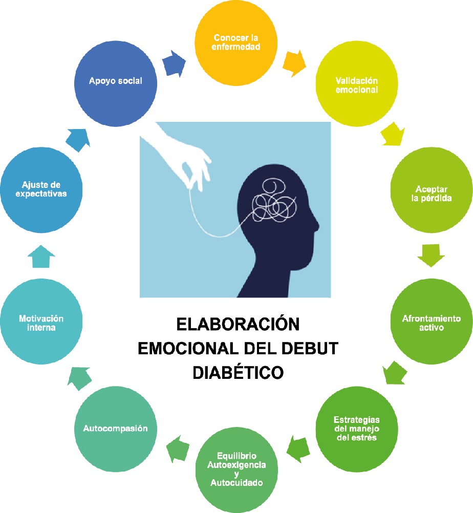 En general se puede decir que se trata de un proceso de asimilación y adaptación, basado en la gestión de las emociones predominantes, como puede ser la negación inicial, el miedo posterior, la culpa, el enfado, la rabia, y la confusión. Por lo tanto, existe un impacto emocional relacionado con el debut diabético.